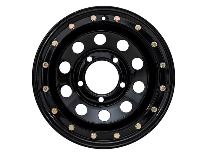 Imitation bead lock wheel looks the part of the real bead lock design with the added bonus of being road legal.
