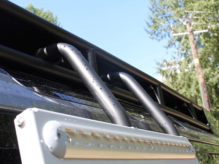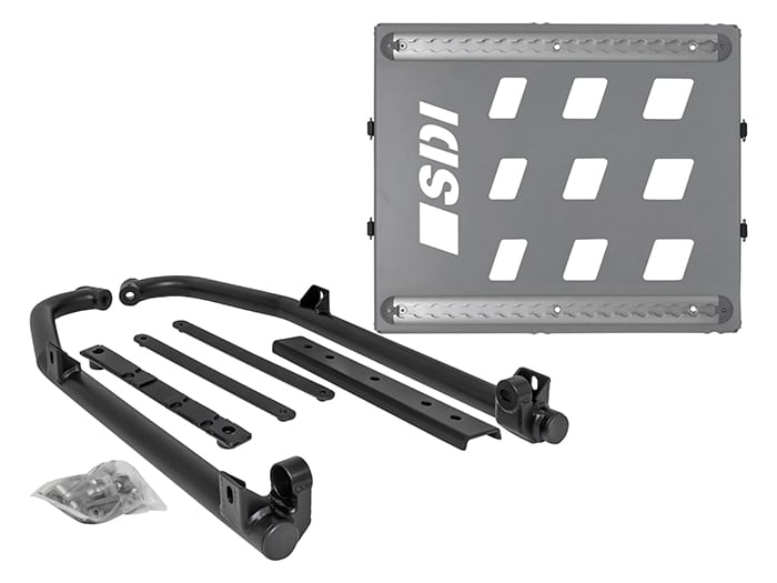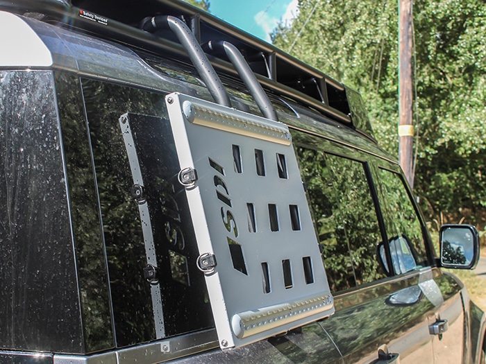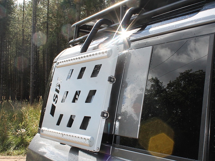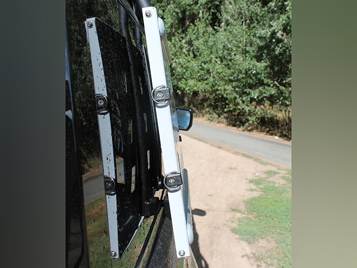 Multi-purpose accessory mount that can be fitted to either side of the vehicle. It can be installed standalone or in conjunction with the Safety Devices Roof Rack Assembly. Features mounting rails along upper and lower sides along with 4 x tie down points which bungee straps can be connected to carry any accessories you may not want to transport inside your vehicle i.e. sand tracks or a cargo net for boots. Requires drilling of the trim panels below the rear window to allow installation into the existing body mounts beneath.