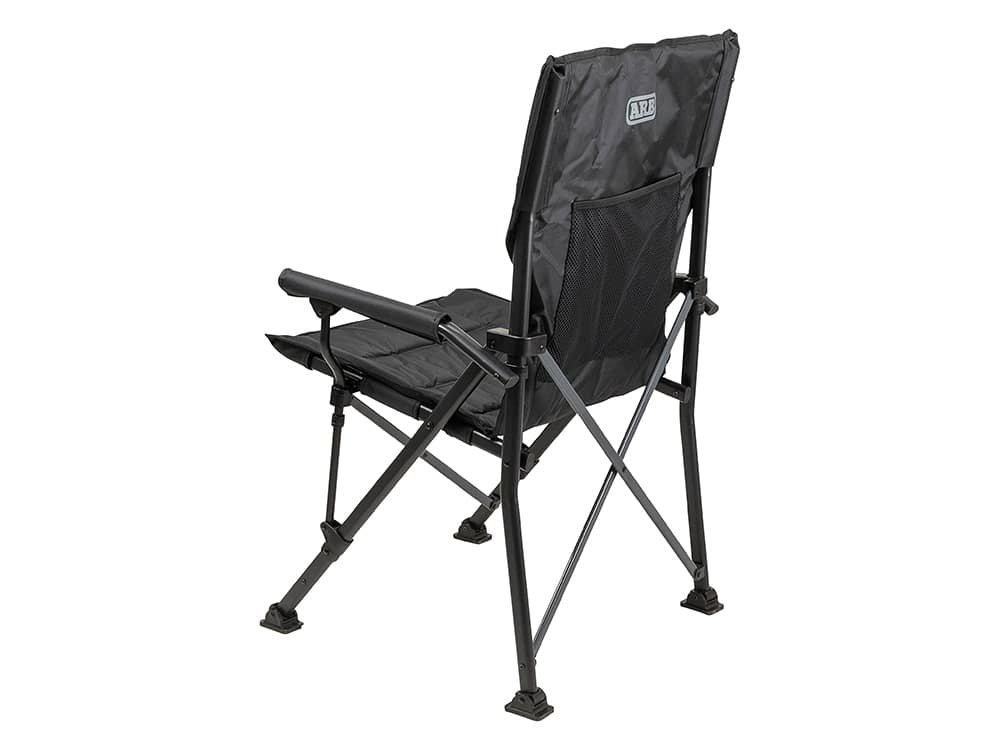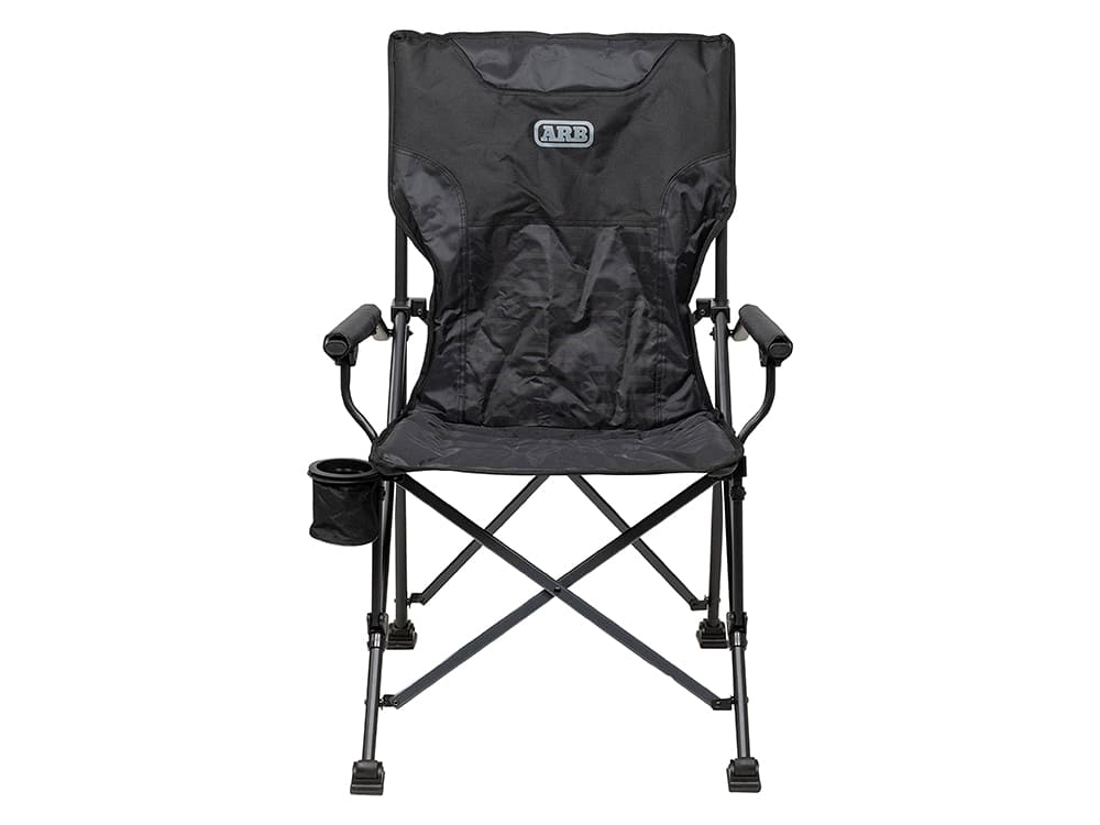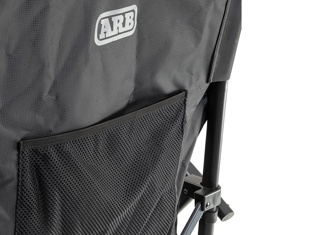 The ARB Base Camp Chair is the perfect all-rounder for travelling. It features a sturdy, sleek black steel frame with contrasted charcoal cross-bars. The body of the chair is made from 600D polyester and 420D ripstop panels and features a tonal print and internal padding throughout. The padded armrests provide ultimate comfort when in use. There is a rear mesh pocket for storing the essentials and a swivel cup holder to keep your drink close. To top it all off the chair comes with a spacious 600D polyester carry bag featuring webbing straps and a premium shoulder pad for easy storage and carrying.