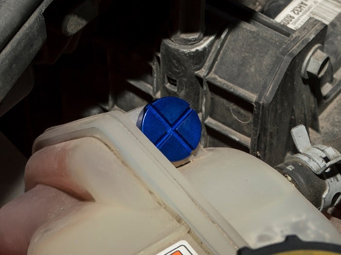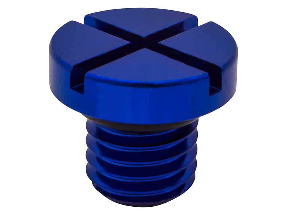 Smart replacement anodised aluminium bleed screws for the coolant overflow container.