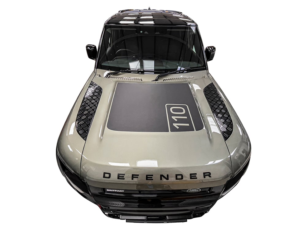 Reduce glare and add a touch of style to your Defender 2020 with a self-adhesive anti-glare bonnet decal in a sleek and modern matte black finish. The anti-glare finish helps reduce sun glare on the bonnet, improving visibility and enhancing safety while driving.
