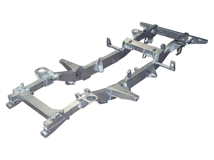 All profiling is done 'in house' using their own laser machine, enabling them to have greater control over the quality of parts used and the materials that they are formed from. The chassis are made using 2.5mm side rails which are 25% heavier than the standard 2.0mm rails. Overall this gives a small increase in the vehicle weight but has a massive effect on the long term durability of the chassis.
