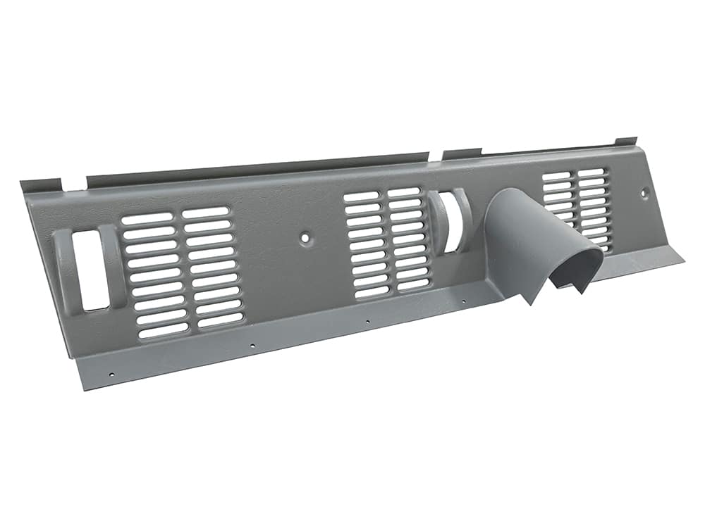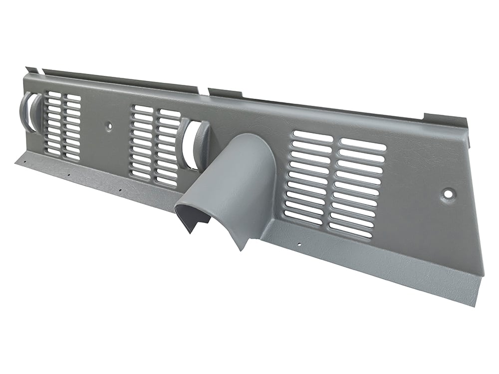 This MUD grey plastic vent panel sits horizontally in the back of the Defender dashboard. Over the years this fragile panel traditionally gets a million things screwed into it so is always high on the shopping list for any restoration project but is no longer available to buy from Land Rover. The colour and texture of the original panel have been accurately replicated but manufactured in a thicker grade material for greater durability.