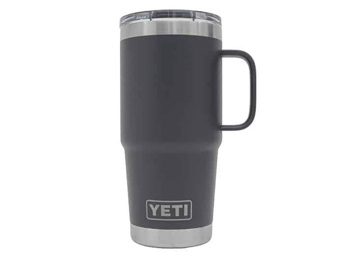 This on-the-go drink handler features the Rambler® Stronghold™ Lid, a leak-resistant, twist-on upgrade with dual-slider magnet technology. The lid rotates for right or left handed use, and the elevated handle fits most cup holders. Dishwasher safe.
