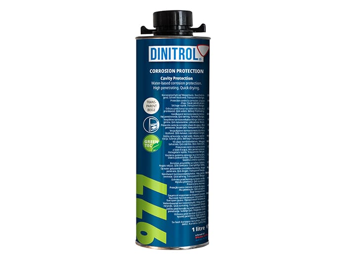 Dinitrol 977 is a semi-transparent, waterbased liquid anti corrosion coating for the protection of cavity areas where a rust preventative surface is needed. The product is water-repellent and has very good penetrating properties. After drying remains a wax coating which has a good temperature resistance up to ca.+120 deg C and is almost tack free. When dried Dinitrol 977 is heated by sun or by engine-heat, it does not have the typical smell of conventional cavity-waxes.