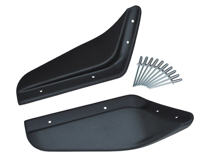 Dirt D-Fenders are a great solution to the annoying problem of mud which splashes through the gap that exists between the bottom of the wheel arch and the mudflap of your Defender. They are an especially useful addition if you are using wider tyres. The Dirt D-Fenders attach with rivets into the underside of the sill and wheel arch flare.