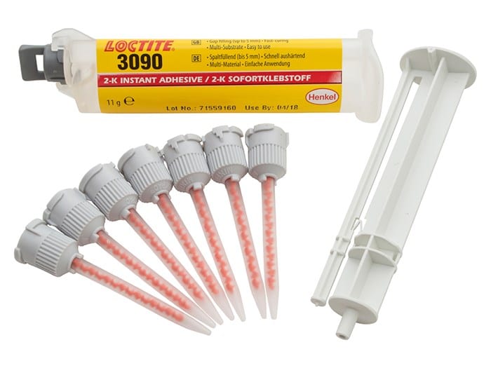 Loctite 3090 Instant Adhesive is a multiple-purpose 2-component, fast curing, gap filling adhesive with excellent bonding characteristics. Suitable for a variety of substrates including plastics, rubbers and metals. It is designed for the assembly of parts with varying or undefined bond gaps up to 5mm or for applications where the complete cure of excess adhesive is a must. The gel consistency prevents adhesive flow even on vertical surfaces. Also suited to bonding porous materials such as wood, paper, leather and fabric.