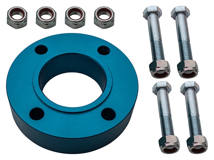 When suspension lift kit is fitted it increases the distance between the transfer box flange and the diff flange. This increased distance can cause the prop shaft to run out of spline travel. Fitting this 25mm prop spacer helps return the prop shaft to its normal operating length therefore allowing full spline travel which also helps reduce the characteristic "binding" of the yokes when a prop shaft is over extended.