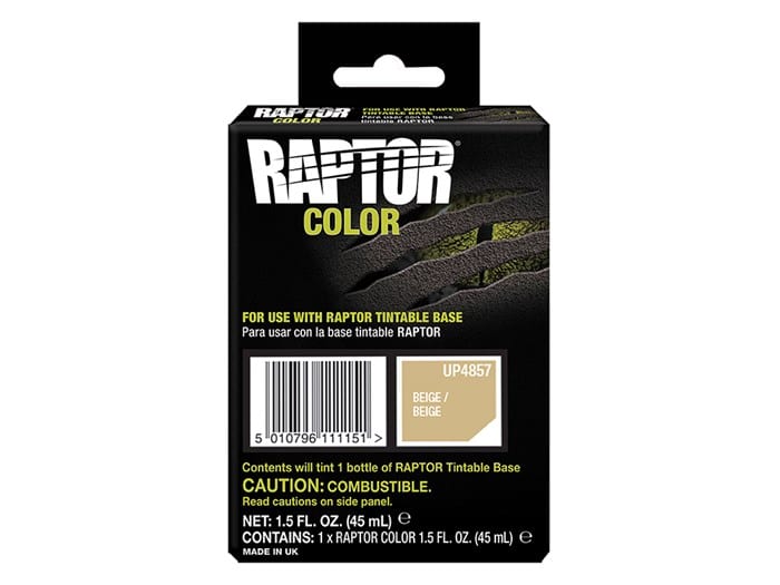 45ml Pouch Raptor Colour Pouches are a highly concentrated tint for use with Raptor Tintable Protective Coating. Mix Raptor Colour Pouches with Raptor Tintable Base (they can fit in the bottle!) to give a rich, UV resistant colour that won’t fade even after years in the sun.
