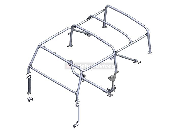 Developed from the original NAS specification Soft Top vehicles. Rearward mounted hoop, requires 1 x OEM hoodstick in front of B hoop to mount door hardware to.