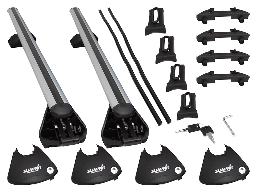 Summit aluminium roof bars complete with pre-mounted feet and ready to use on vehicles with raised railings.