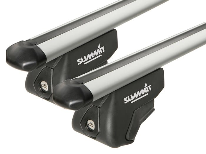 Summit aluminium roof bars complete with pre-mounted feet and ready to use on vehicles with raised railings.