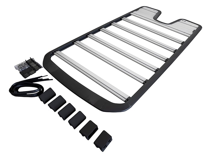 The expedition roof rack fits directly to the roof rails, providing a flexible roof carrying solution that can be removed when not required. It also comprises T-track bars to allow a variety of items to be attached.