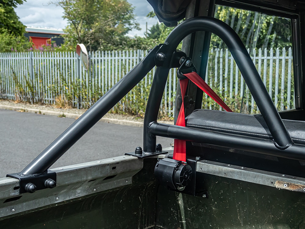 This Safety Devices seat belt anchorage frame is designed to provide a robust belt mounting in Soft Top models. Manufactured from 38.1mm x 2.64mm seamless tube, the frame provides both upper inertia seat belt reel mounting points and also provides upper harness mounting points when wrapped around the tube.