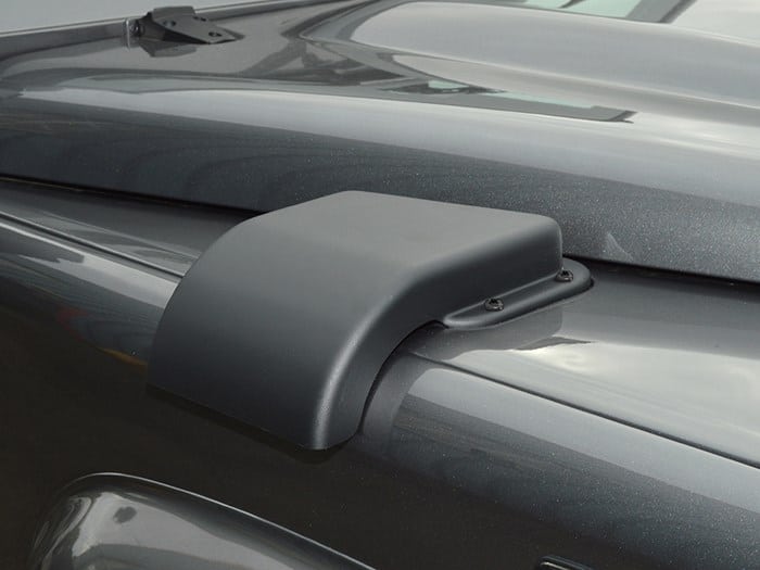 The cowl fits over the existing grille and follows the profile of the Defender’s wing.
