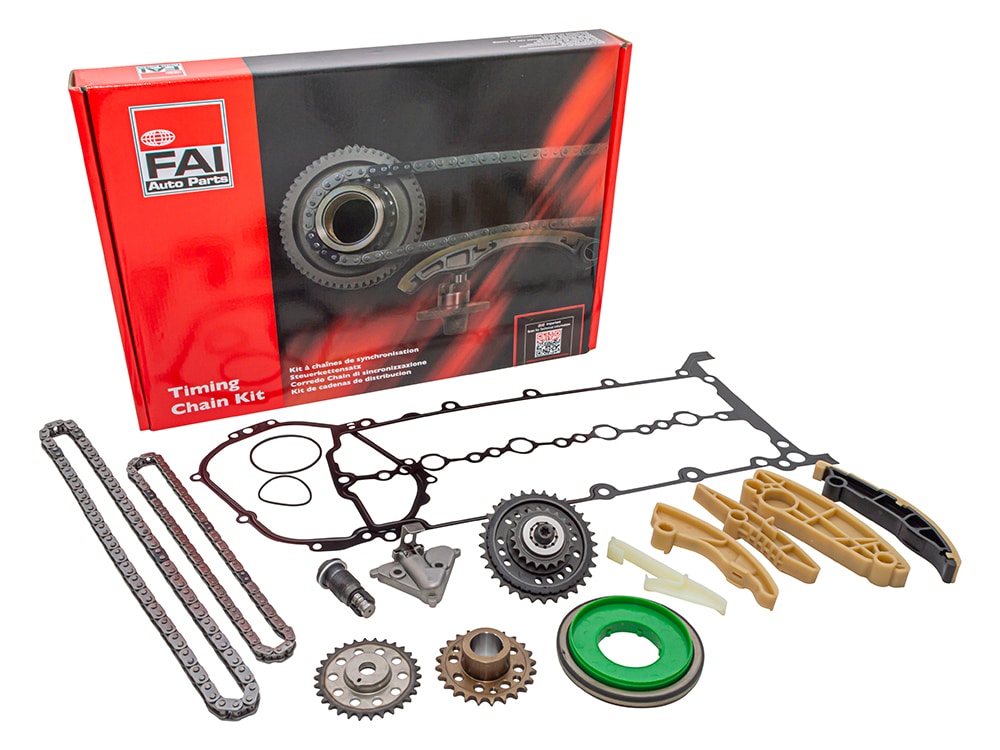 Kit contains guides, chains, tensioners, sprockets & gaskets