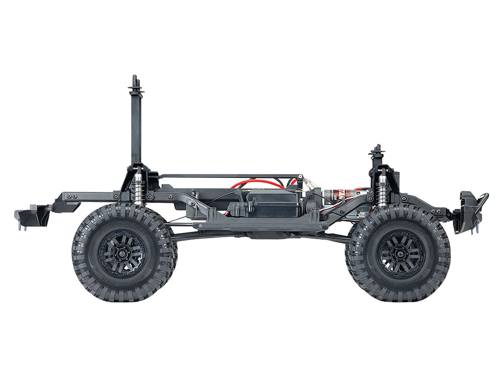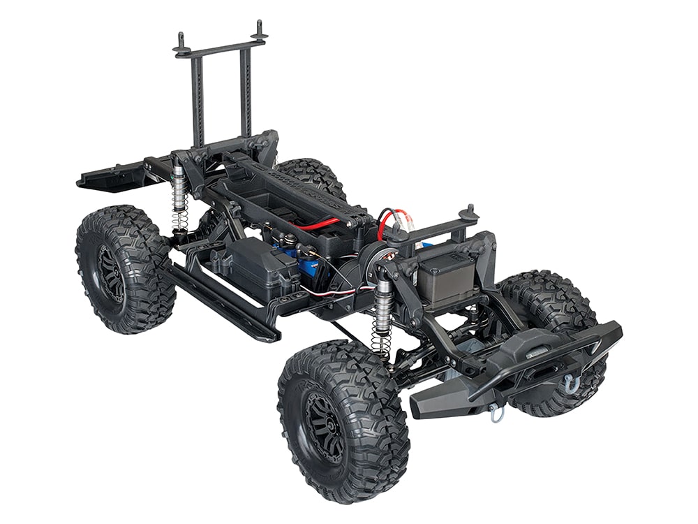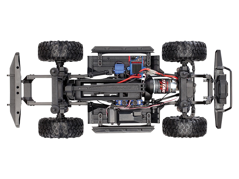 The Traxxas TRX-4® Scale and Trail® Crawler is an all-new Traxxas design that is loaded with innovation that instantly obsoletes the status quo with exciting new features, versatility, and capability. In other words, we built it the Traxxas way, rugged, powerful, and ready for fun! Underneath the authentic scale look is a machine built for extreme off-road capability that takes you to new places and new adventures. Exclusive portal axles deliver maximum ground clearance that dramatically turns “no way” into “no problem.” Whether you are enjoying outdoor trails or getting technical on the rocks, the remote-locking front and rear differentials and high/low range transmission provide unmatched driving versatility.