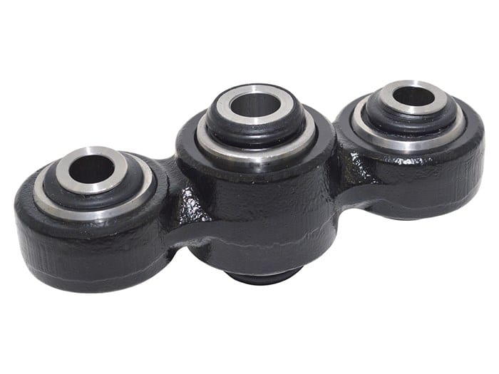 This replacement pivot for the rear suspension is complete with bushes fitted which makes an awkward job easier.
