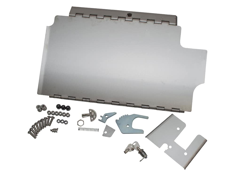The X-Defend Pedal Lock prevents the clutch, brake and throttle pedal from being operated, making a vehicle almost impossible to drive! Unlike other pedal locks, this remains bolted to the floor of the vehicle. When not in use, it folds flat on the floor and seat box, forming the floor of the cab. In this position it can be covered with your usual floor mat. This means you don’t have to store a 20kg lump of metal which could be lethal if it hit you in the event of an accident or while off-roading. It also means that locking is incredibly quick. Just release the catch which holds it against the seat box and lock into position. A 10mm thick steel claw grabs the brake pedal shaft and ratchets in tight against it. It can be locked in a couple of seconds! To unlock turn the key which releases the pedal and fold flat on the floor. The Pedal Lock is supplied in tough, corrosion proof 304 stainless steel and uses formed hinges with a 6mm stainless pin. It is supplied with an anti-drill, British made Lowe & Fletcher RPT Lock.