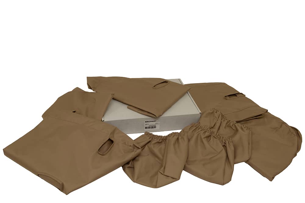 Custom-made seat covers designed and manufactured in the UK. These seat protectors are guaranteed waterproof and are perfect for guarding your Land Rover’s seats from not only daily wear, but also from spills, oil, grease, pet fur, and everyday dirt and grime. Attention to detail ensures that these covers fit seamlessly. They feature elasticated borders around the seat base and come with complete backs. The back also features a slit to enable the rear passengers to use the seat pocket in front of them. To ensure they remain securely in position, they’re equipped with elastic straps and buckle fastenings beneath. Additionally, individual headrest covers are included, allowing for height adjustments. The covers have expertly sewn seams that are then top-stitched, ensuring durability and a quality finish. Convenient velcro openings at the seat top mean you can install them without the need to remove the headrests. Constructed from resilient 600 Denier Polyester with a polyurethane coating, the fabric is 100% waterproof. This robust and premium material has a slightly textured surface for added comfort.